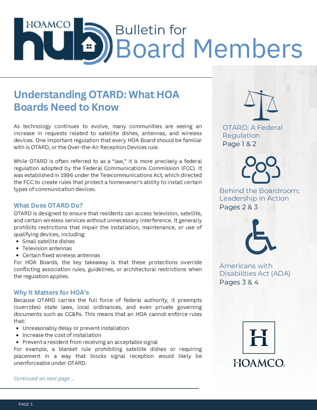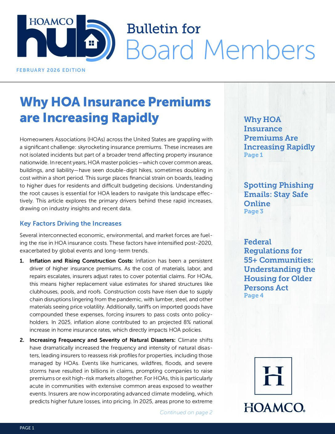 Additionally, HOAMCO has created several courses which are offered year-round to Board members across the state, tuition free and available to current clients as well as Boards of communities currently not managed by HOAMCO.